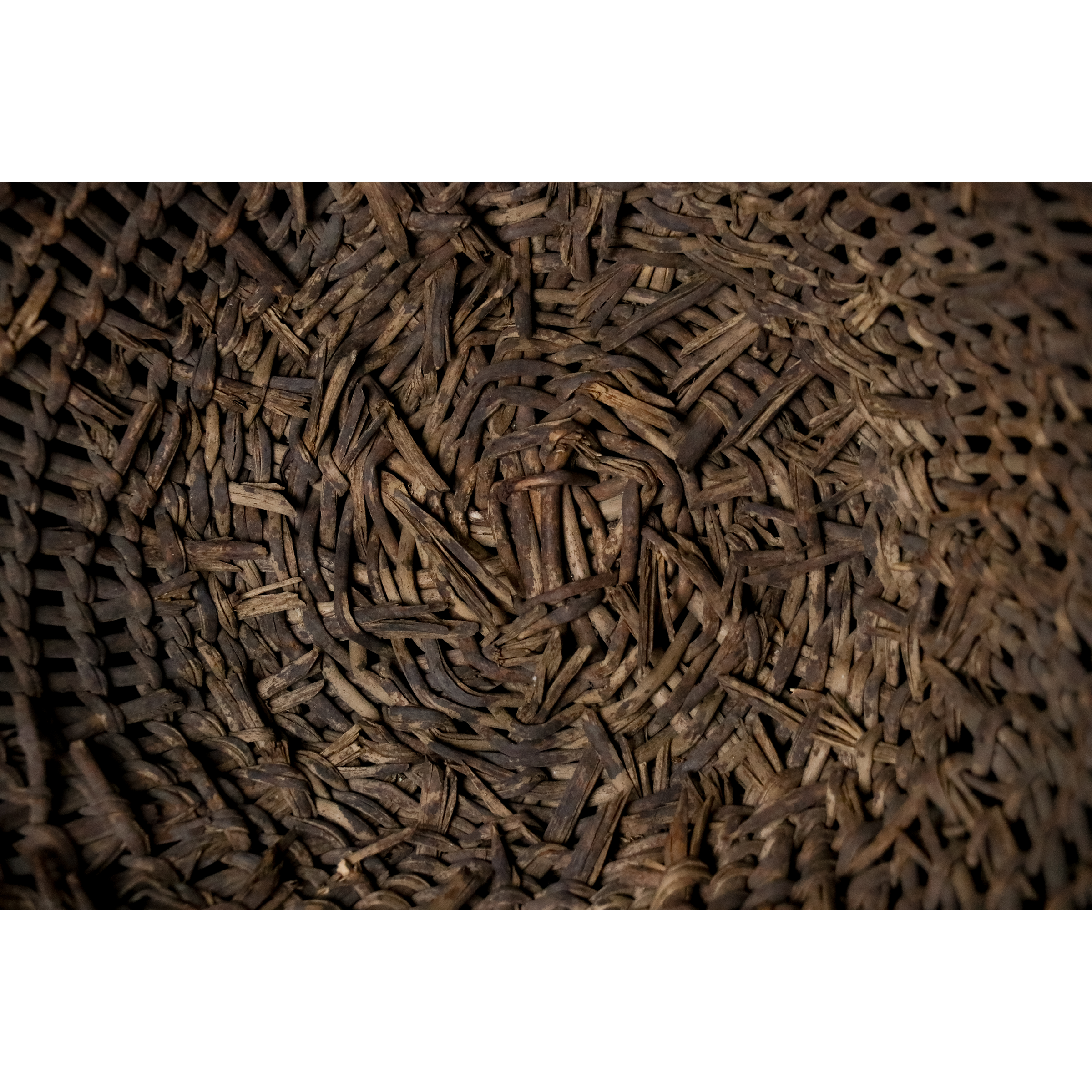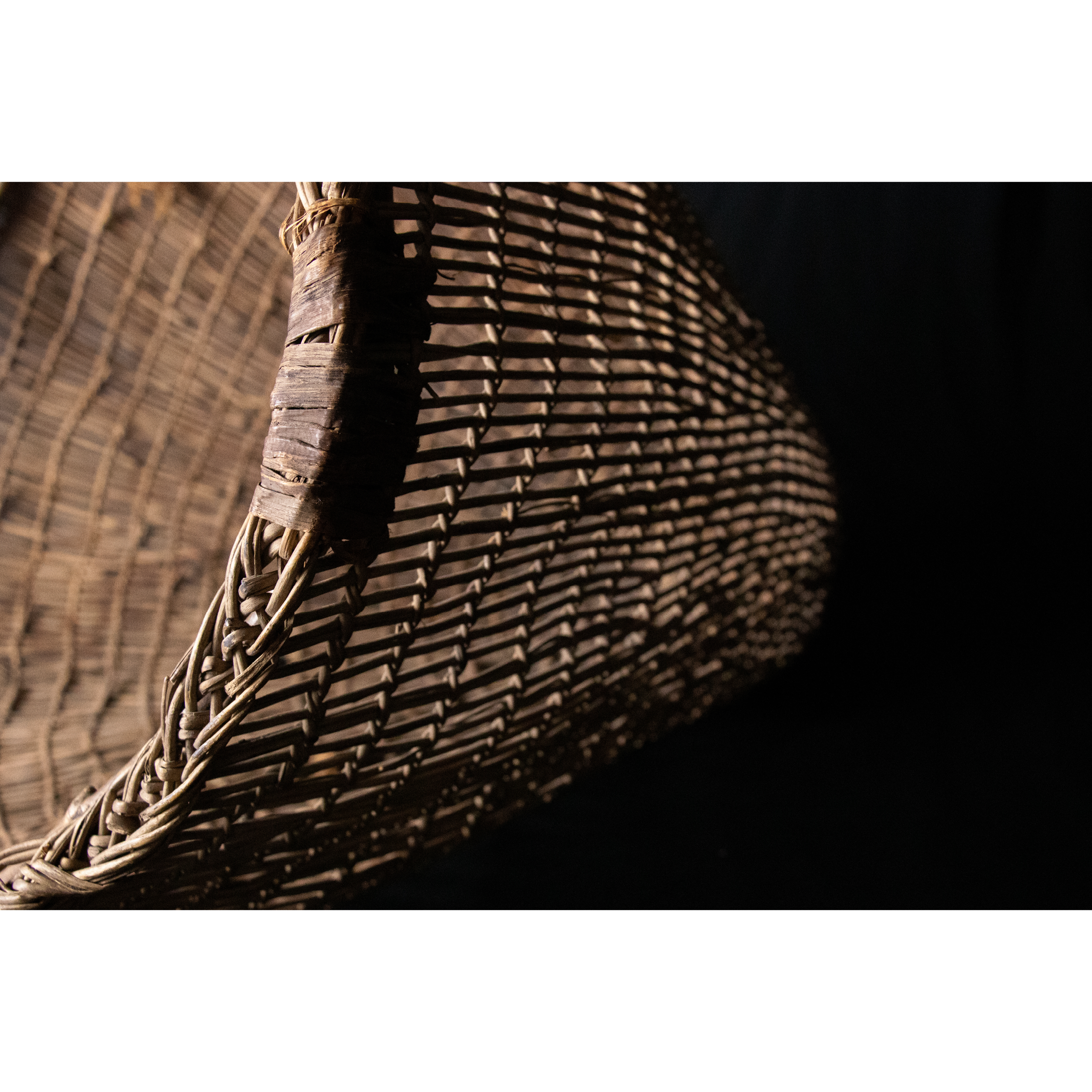 It has an interesting method of fixing broken sections of weaving that has happened, as the basket is being made. The weaver comes to the place just above the broken row (the next row). A stick is folded over and twined over the broken section. The remaining ends are then folded up and incorporated into the warps and locked into the row above.